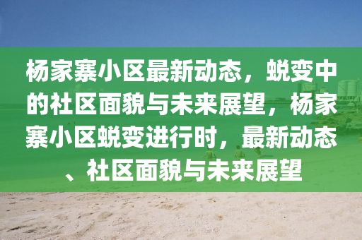 關(guān)于楊家寨小區(qū)的最新消息引起了廣泛關(guān)注,作為城市發(fā)展的一個(gè)縮影,楊家寨小區(qū)的變化不僅關(guān)乎居民的生活品質(zhì),也反映了城市更新的步伐,本文將從新聞報(bào)道的視角出發(fā),結(jié)合個(gè)人見(jiàn)解,為您深入剖析楊家寨小區(qū)的最新動(dòng)態(tài)。